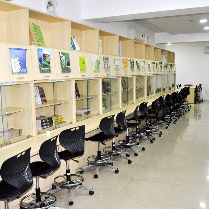 Library has > 1000 books and about 50 reputed Journals. It has the following features: Open Access Systems, Content Page service for current journals, Bibliographical search service from Library as well as from other resources, Inter library loan facility
